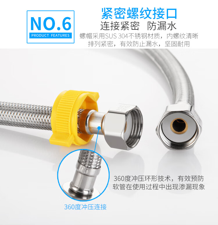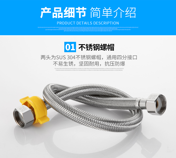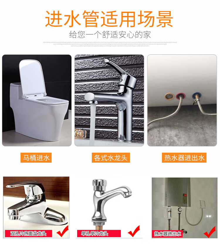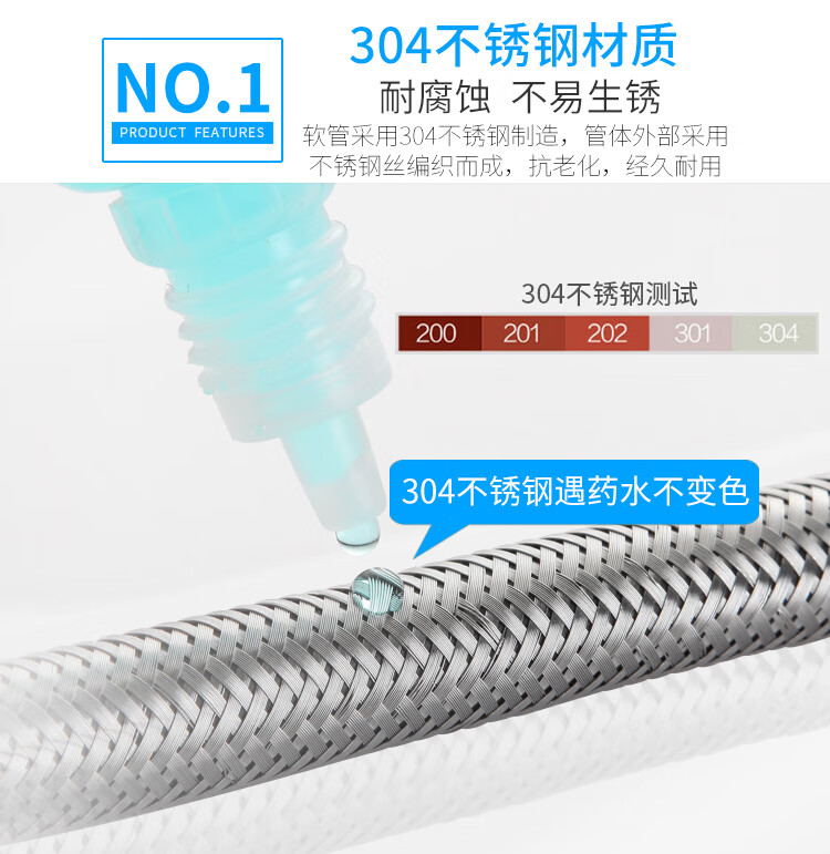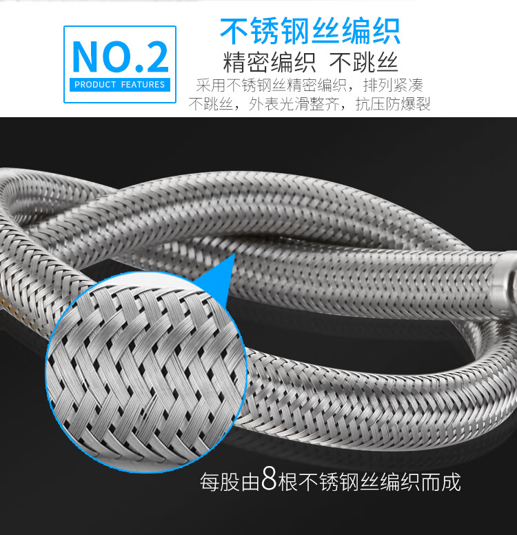 304不锈钢金属编织4分15冷热进水软管马桶高压防爆家用水管304不锈钢金属编织加厚铜头冷热进水软 304双头管50公分(一根)