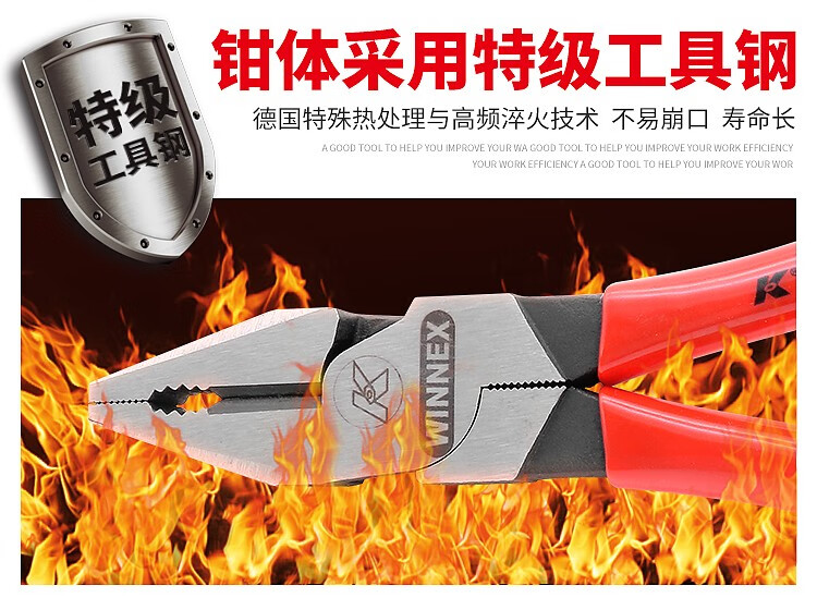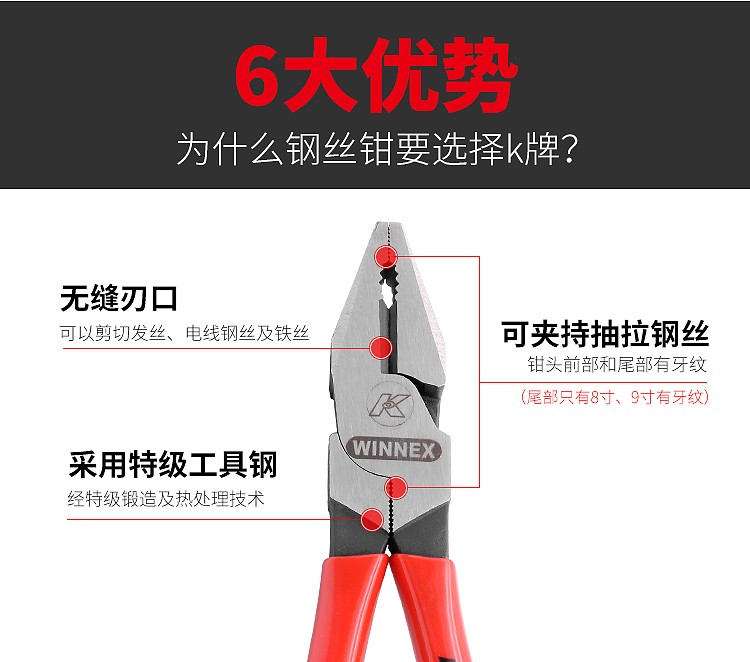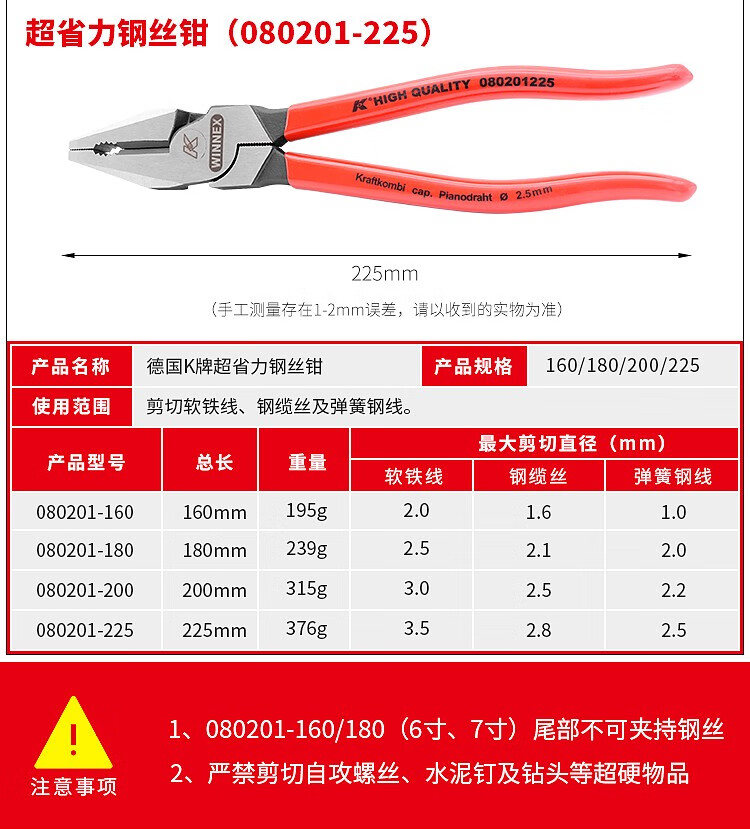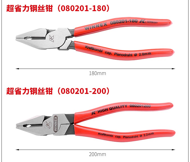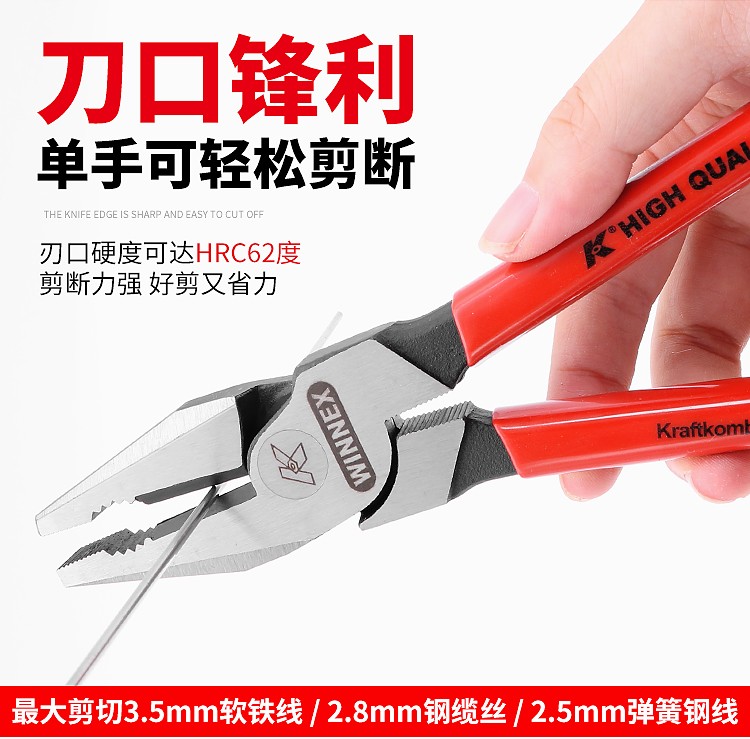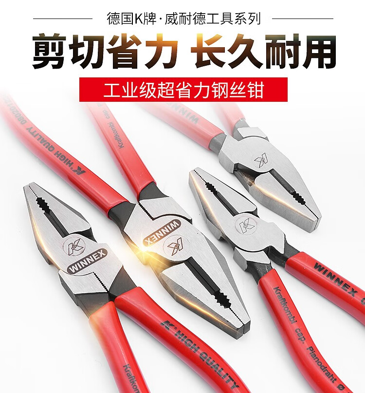 德国K牌 进口 省力钢丝钳 工业级老虎钳 钢筋钳 断线钳 进口 家用钳子 200mm(带夹钢丝口)