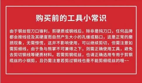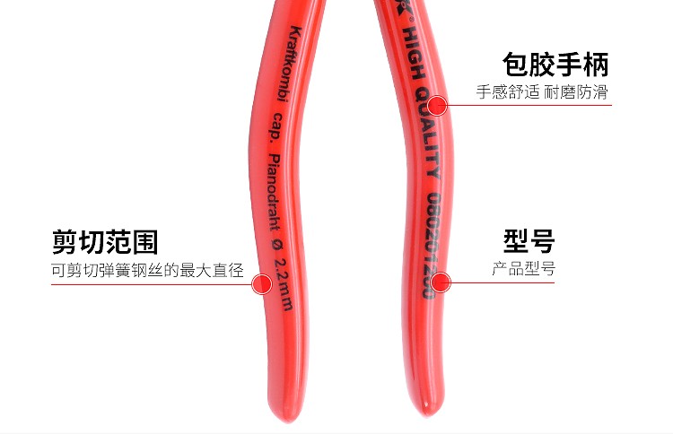 K牌原装进口,刃口特别锋利,剪切很轻松,所以剪切很硬的钢丝(尤其是穿线用的钢丝)会有小痕迹哦。不影响使用的!!请注意!