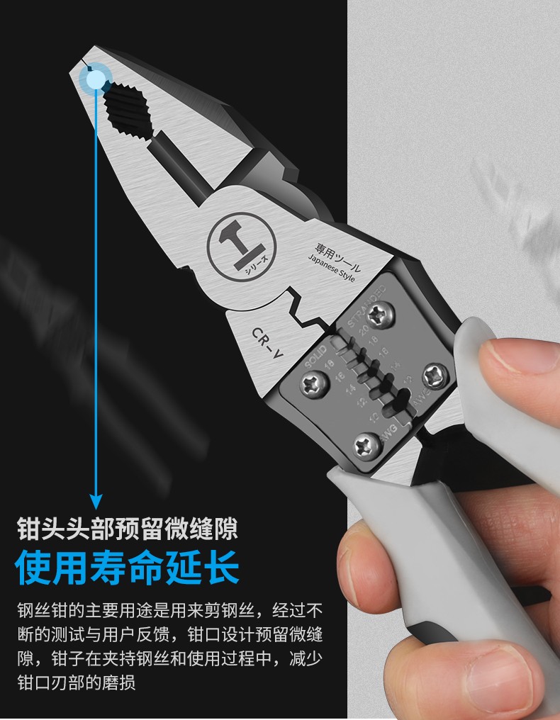 绿林(GREENER)工业级多功能老虎钳 省力电工工具钢丝钳子套装尖嘴钳斜口钳剥线钳手钳日本德国品质 【五合一多功能】9寸钢丝钳-225mm