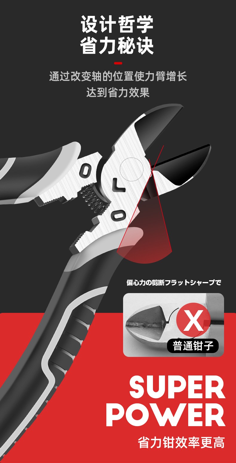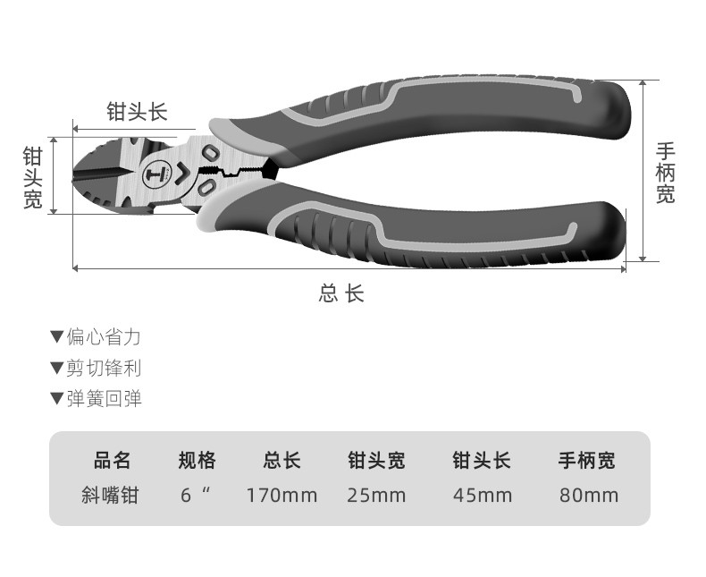 绿林(GREENER)偏心省力老虎钳 工业级钢丝钳子克丝尖嘴钳多功能剪钢丝电工手钳工具日本德国品质 【偏心省力】6寸斜口钳-170mm
